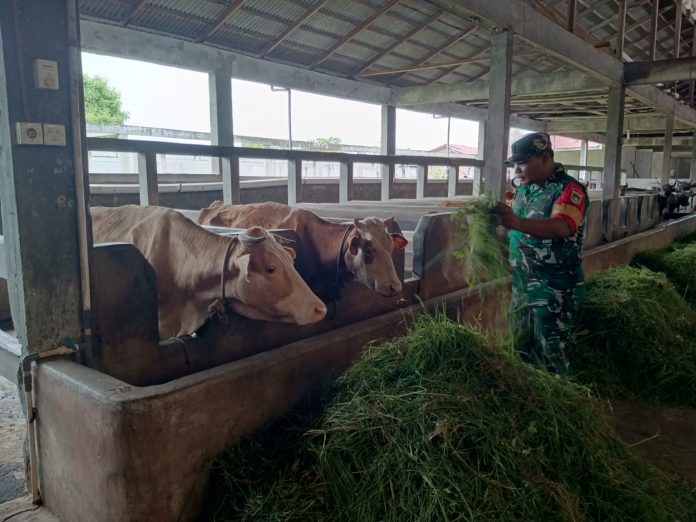 Babinsa Sertu Syafrizal Cek Hewan Ternak Milik Warga Binaan Cegah PMK